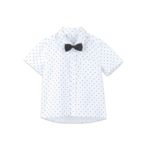 В комплекте с рубашкой имеется черный галстук-бабочка на резиновой застежке, которую можно регулировать.