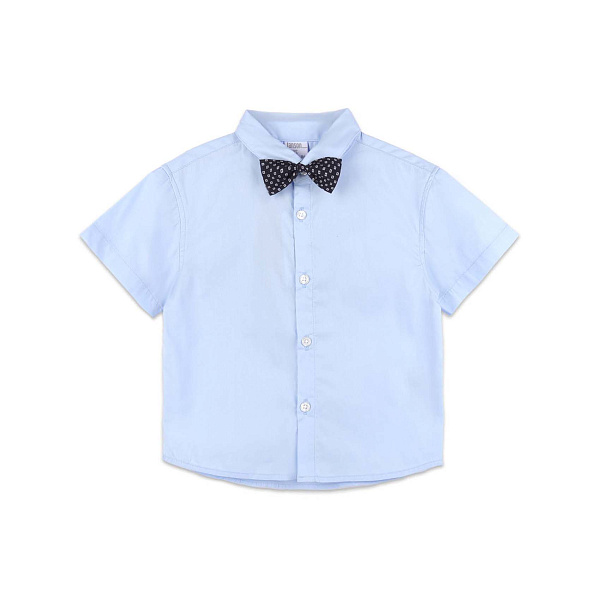 Классическая рубашка с коротким рукавом – это обязательный элемент гардероба мальчика. Модель прямого кроя застегивается на пуговицы, дополнена изящной бабочкой. Она эффектно смотрится с брюками и джинсами, уместна на любом мероприятии. Отложной воротничок не будет натирать шею, подчеркнет строгий образ юного джентльмена. Отделочные и соединительные швы выполнены аккуратно, не вызовут дискомфорта.