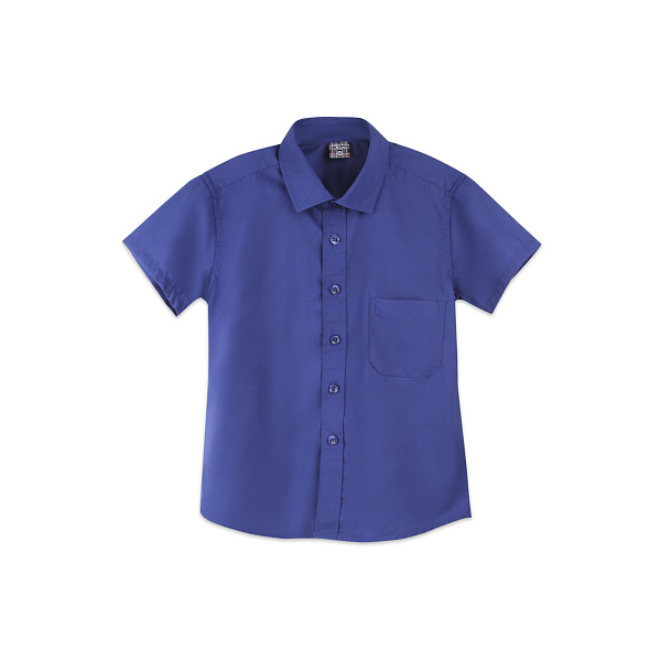 Рубашка сшита на мальчиков. Ткань: хлопок 35%, полиэстер 65%. Рубашка имеет прямой силуэт, ее можно носить навыпуск или заправленной в брюки. Рукава короткие, сквозная застежка на пуговицах. Цвет пуговиц в тон рубашке. На рубашке имеется нагрудный карман без клапана. Воротник отложной. Цвет изделия - синий однотонный. Рубашка предназначена для повседневного ношения, она хорошо сочетается с любым видом одежды. Перед использованием рубашка подлежит обязательной предварительной стирке.