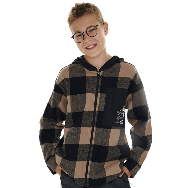 Модная клетчатая рубашка станет самым любимым предметом гардероба у мальчика дошкольного возраста. Модель имеет удобный капюшон, свободный крой, застегивается на молнию. Изделие позволит создавать различные сочетания с брюками, джинсами или бриджами, выручит в прохладную погоду.