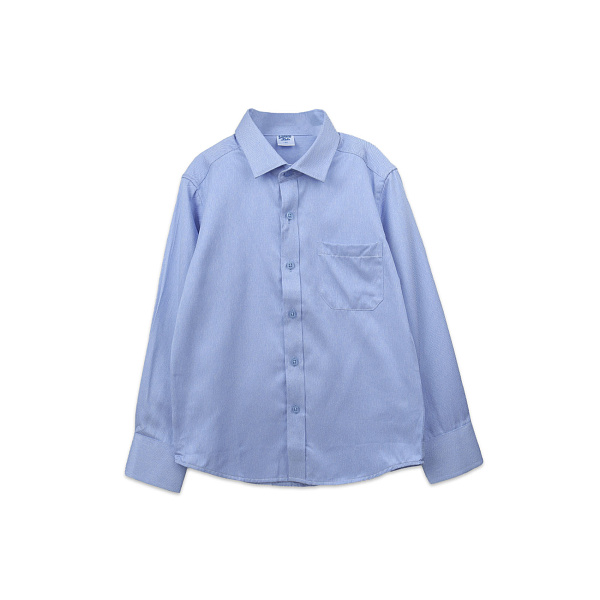 Красивая и стильная рубашка в гардеробе мальчика пригодится на разные случаи жизни: на торжественные мероприятия, а также для повседневной носки в школу. С помощью такого изделия ребенок будет выглядеть модно и элегантно. Материал рубашки плотно облегает фигуру, сохраняет форму и вид даже после многократных стирок. В составе ткани имеется 20% хлопка, 55% полиэстера, 25% вискозы. Силуэт рубашки - свободный, рукава - длинные с манжетами на пуговице, застегивается рубашка также пуговицами. Она имеет нагрудный накладной карман без застежки. Воротник - классический отложной на стойке. Цвет рубашки голубой, принт в полоску.