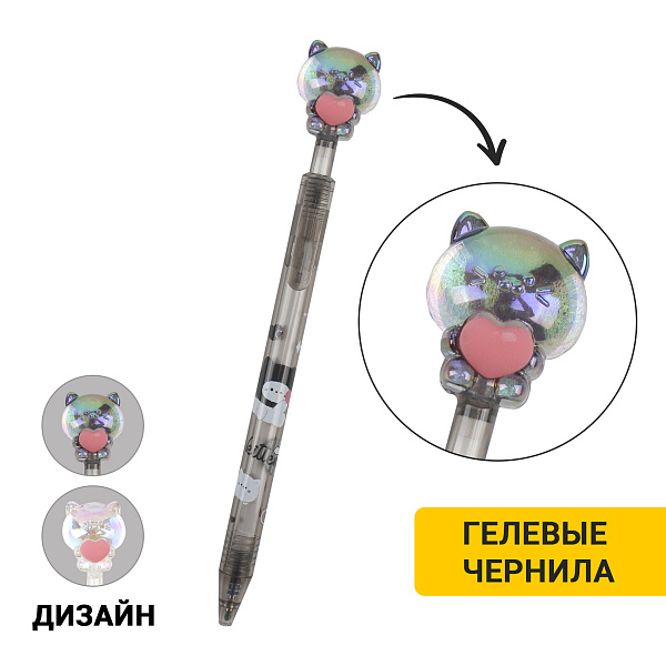 Ручка автомат гелевая с фигуркой котенок с сердечком в ассортименте