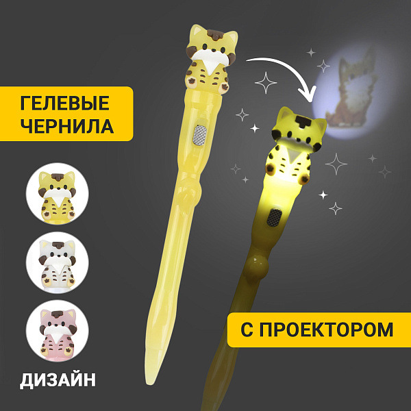 Гелевая ручка с проектором ― удивительный аксессуар, который объединяет в себе функциональность и развлечение. Яркий корпус украшен милым котиком, который мгновенно поднимает настроение.