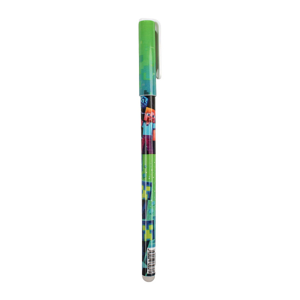 Гелевая ручка «Пиши-стирай» оснащена ярким пластиковым корпусом с тематическим игровым рисунком в пиксельном стиле.