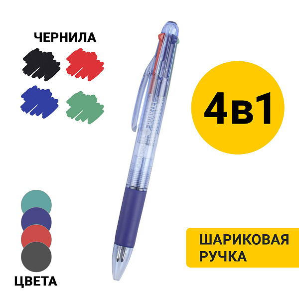Шариковая ручка 4 в 1 — это компактное и удобное решение для учеников и студентов. В одном корпусе собраны сразу четыре цвета: черный, синий, красный и зеленый. Эта ручка идеально подходит для ведения заметок, выделения текста и создания цветных пометок.