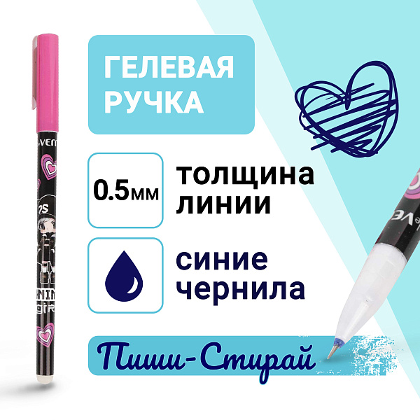Гелевая ручка «пиши-стирай» в стиле аниме – отличный выбор для школьниц, которым нравится японская культура и манга. Их корпус украшен рисунками в этом стиле, что отражает интересы ребенка и поднимает ему настроение во время занятий.