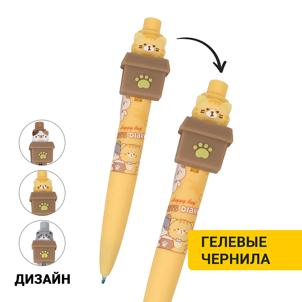 Ручка гелевая Котята в коробке автоматическая в ассортименте
