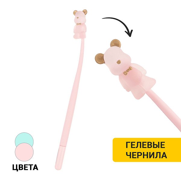 Ручка гелевая с фигуркой медведя в тонком и легком корпусе розовая в ассортименте