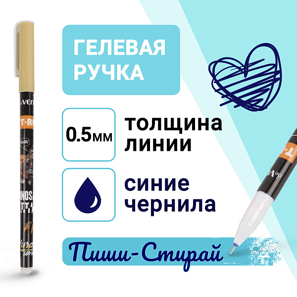 Синие гелевые чернила быстро сохнут, не размазываются и не пачкают бумагу, одежду и руки. Ручка пишет гладко и легко, толщина ее линии всего 0,5 мм. Ручка позволяет аккуратно исправлять ошибки без корректора и сохранять записи в чистоте.