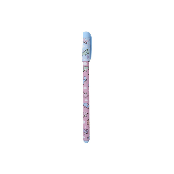 Шариковая ручка «Единорожки в облачках» необходима каждому школьнику для занятий и записи важной информации. Ручка имеет стильный дизайн с округлыми линиями. Она удобно лежит в руках благодаря нескользящей поверхности корпуса. Чернила быстро высыхают и не размазываются по бумаге. Ручка закрывается колпачком, что позволяет избегать пересыхания чернил в стержне. С помощью клипа-прищепки ручку можно зацепить за карман, держатель в пенале или тетрадку. Розовый корпус, украшенный милыми летающими в облаках крылатыми единорогами, дополняет голубой колпачок с аналогичным забавным рисунком.