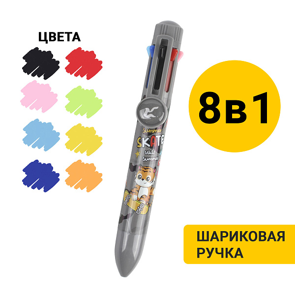 Автоматическая шариковая ручка «Trend 8 в 1» — это настоящая находка для маленьких исследователей и творцов. Объединяя в себе восемь разных цветов, она позволяет легко переключаться между палитрой.