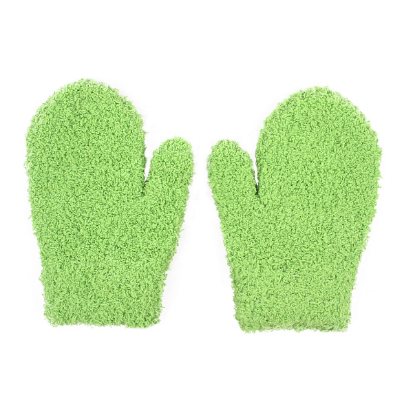 Яркие зеленые варежки из мягкого трикотажа выглядят очень уютно и привлекательно. Они имеют классическую форму с плотной резинкой на манжете, которая не сдавливает запястье и не дает варежкам съезжать с руки. Поверхность словно покрыта нежным пушистым слоем, что делает их особенно приятными на ощупь.