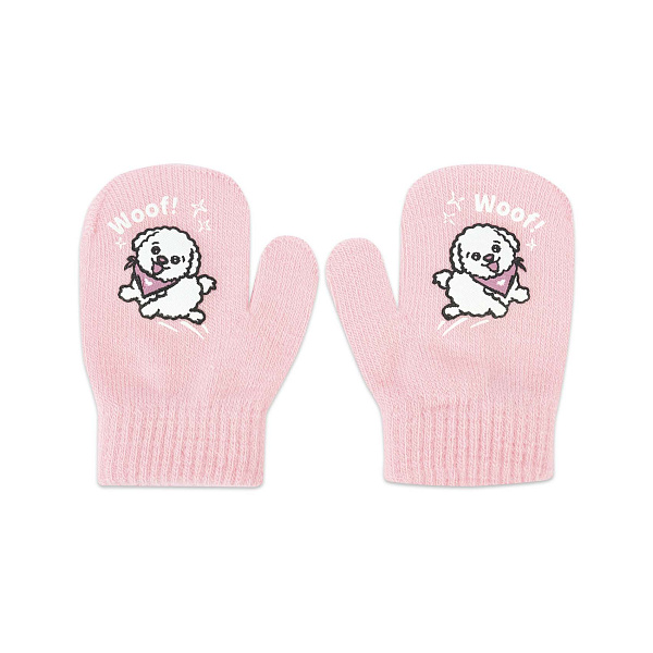 Рукавички украшены изображениями смешных собачек, предназначены для девочки ясельного возраста. Аксессуар органично дополнит нежный образ малышки, сохранит руки теплыми на прогулке в холодную погоду. Модель полностью отвечает всем потребностям ребенка. Широкая трикотажная резинка обеспечивает надежную фиксацию и плотное прилегание в области запястья, удобна в использовании.