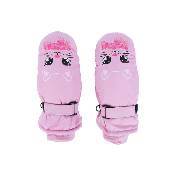 Розовые рукавицы приведут в восторг каждую девочку. Принт забавной мордочки котенка с шарфиком смотрится на изделии особенно привлекательно. Ребенок с удовольствием будет надевать рукавички на прогулку. Они защитят маленькие ручки от холода в студеную пору. Благодаря продуманному крою, наличию специальной резинки, текстильному манжету и пояску на липучке изделие надежно удерживается на детской ладони, не сползает во время активных игр, не пропускает ветер и холод вовнутрь. Внутренняя часть выполнена из плотного полиэстера черного цвета, а верх – из полиэстера и полиуретана.