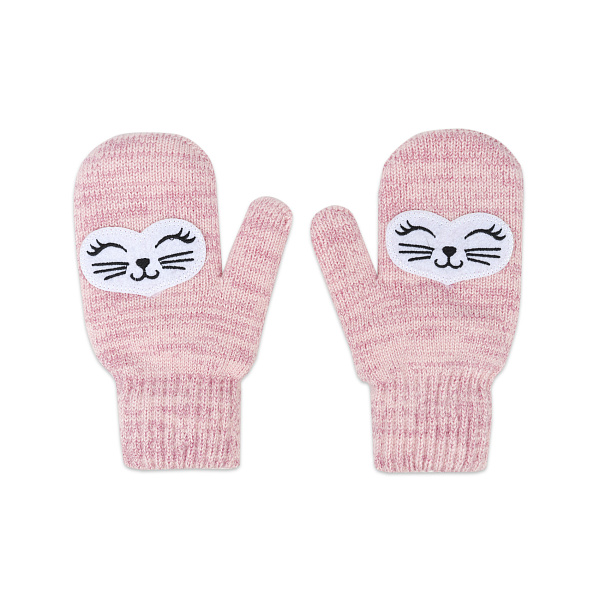 Утепленные рукавицы добавят нежности и легкости в утепленный гардероб ребенка. Трикотажная ткань нежного розового цвета пошита из на основе эластана и искусственной шерсти (ПАН), материалы эффективно накапливают тепло, устойчивы к минусовой температуре и легко тянутся, поэтому перчатки не вызовут дискомфорта во время носки. Широкий эластичный манжет плотно прилегает к запястью и препятствует проникновению холодного воздуха. В рукавицах два отделения: одно для большого пальца, а второе – для остальных четырех. Такой формат вместе с утеплением изнутри быстрее согреет руки и не даст пальцам замерзать. Завершают дизайн кошачьи мордочки на подкладке-сердечке.