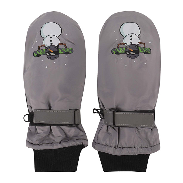 Рукавицы для мальчика в сером цвете — настоящая находка для юных любителей зимних забав. Их выразительный дизайн с изображением забавного снеговика придает изделию яркий, запоминающийся образ. Плотная черная резинка и регулируемый ремешок обеспечивают надежную фиксацию на руке, не позволяя рукавицам съезжать или спадать. Внутренняя сторона также выполнена в черном цвете, что добавляет практичности.