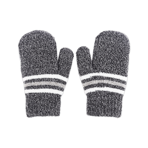 Одинарные детские рукавицы для холодного времени года имеют комфортную форму, поэтому ручкам малыша в них будет очень тепло и уютно. Модель представлена в тёмно-сером оттенке с контрастными белыми полосками. Такая лаконичная расцветка подойдёт под абсолютно любую верхнюю одежду малыша. Рукавицы удерживаются на запястье с помощью широкой трикотажной резинки, при этом не сдавливают его и не спадают в процессе активных игр.