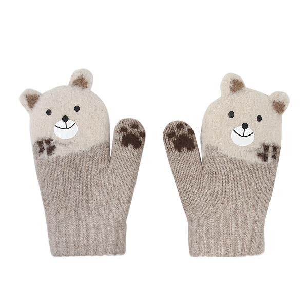 Варежки зимние для девочки выполнены в нежном коричневом цвете с милым дизайном в виде медвежьей мордочки и декоративными подушечками лапок на кончиках пальцев. Модель изготовлена из мягкого трикотажного материала, который отлично сохраняет тепло и позволяет коже дышать.
