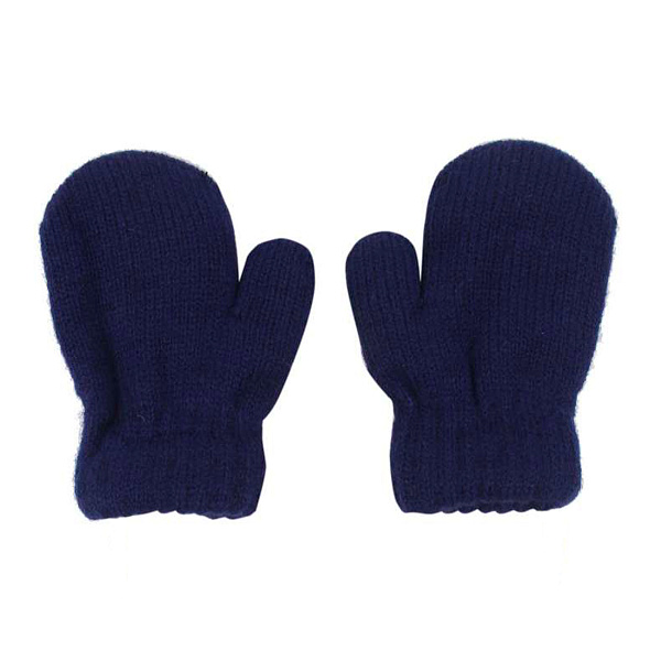 Трикотажные зимние рукавицы на веревочке выполнены из мягкого акрила с добавлением эластана. Они помогут сохранить руки малыша в тепле в холодное время года. Веревочка соединяет рукавицы между собой, что предотвращает их потерю и упрощает одевание. Цвет изделия — темно-синий, что сочетается с разными зимними нарядами.