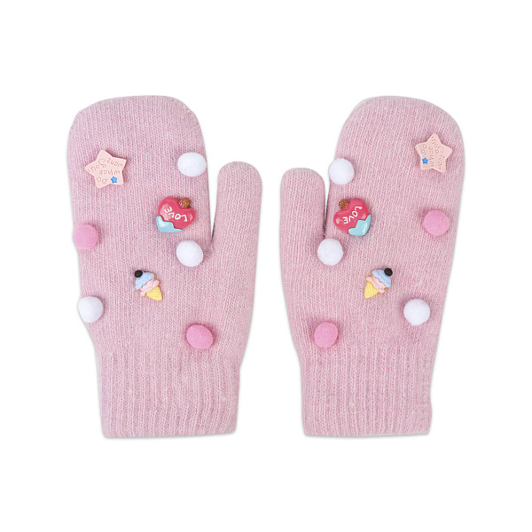 Маленьким любительницам сладостей придутся по душе забавные рукавицы с декором в виде конфет и мороженого. Трикотажная ткань пошита из шерсти, нейлона и эластана. Комбинация материалов обеспечивает быстро накапливание тепла, эластичность и устойчивость к растяжениям. Широкий эластичный манжет плотно прилегает к запястью и препятствует проникновению холодного воздуха. Варежка состоит из двух отделений – для большого пальца и для остальных пальцев. В рукавицах такой конструкции детям комфортнее играть на улице, поскольку пальцы меньше мерзнут. Разноцветные бусины, сердечки и мороженое поднимут настроение девочке и добавят яркий акцент в образ.