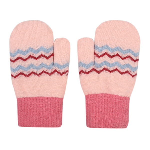 Трикотажные варежки для девочки выполнены в нежных розовых тонах с декоративным узором в виде волн голубого и бордового цветов. Модель с плотной резинкой на манжете обеспечивает надежную посадку, не позволяя холодному воздуху проникать внутрь. Варежки отлично подойдут для зимних прогулок.
