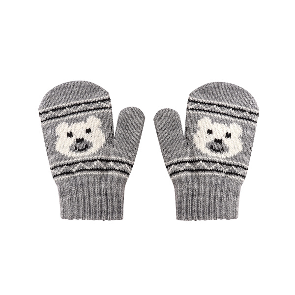 Зимние рукавицы предназначены для мальчика ясельного возраста. Они оформлены в нейтральной цветовой гамме, украшены геометрическим орнаментом и изображением забавных медвежат. Рисунки развлекут малыша на прогулке, поднимут ему настроение. Изделие имеет широкую трикотажную резинку в области запястья. Она обеспечивает плотное прилегание и надежную фиксацию, не мешает правильному кровообращению.
