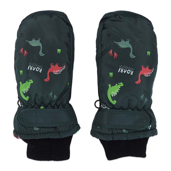 Рукавицы зимние Lanson Kids на липучках с принтом динозавров зеленые