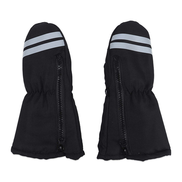 Рукавицы зимние Lanson Kids с застежкой молнией с белыми полосами черные