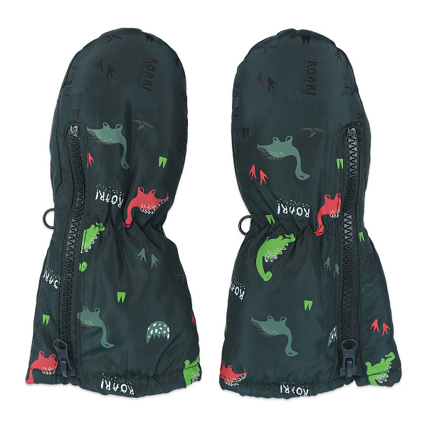 Рукавицы зимние Lanson Kids с застежкой молнией с принтом динозавров зеленые