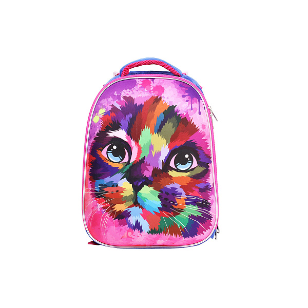 Ранец JUNGER корпусный Радужный котик эргономичный сине-розовый
