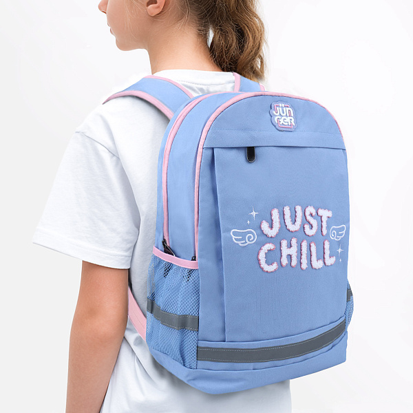 Школьный рюкзак для девочки «Just chill» создан для удобного и безопасного использования. Два просторных основных отделения и дополнительное переднее позволяют аккуратно организовать тетради, учебники и другие школьные принадлежности. Боковые сетчатые карманы подходят для бутылки с водой или зонтика. Голубой цвет с розовыми элементами придает рюкзаку яркий и привлекательный вид.