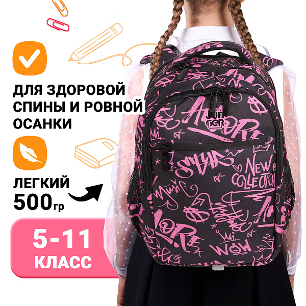 Рюкзак JUNGER Розовое граффити с ярким дизайном для старших и средних классов