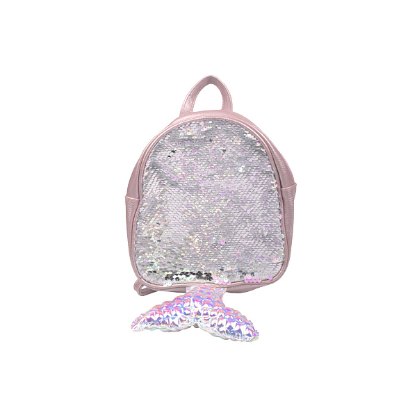 Стильный рюкзак розового цвета с вышивкой из пайеток и дополнительной вставкой в форме хвоста русалки сделате образ девочки сказочным и волшебным. Пайетки плотно пришиты и красочно переливаются на свету. Их положение можно менять, если провести рукам и по плоскости. Ремешки рюкзака изготовляются из плотного материала, имеют специальные металлические регуляторы длины ремешка, которые позволят подстроить его. Кроме ремешков есть специальная ручка, с помощью которой рюкзак можно носить в руке. В рюкзаке есть одно большое отделение, которое открывается с помощью замка-молнии из металла. Состав: текстильные и полимерные материалы.