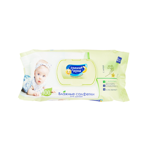 Салфетки влажные Солнце и Луна ECO с экстрактом липы 100 шт