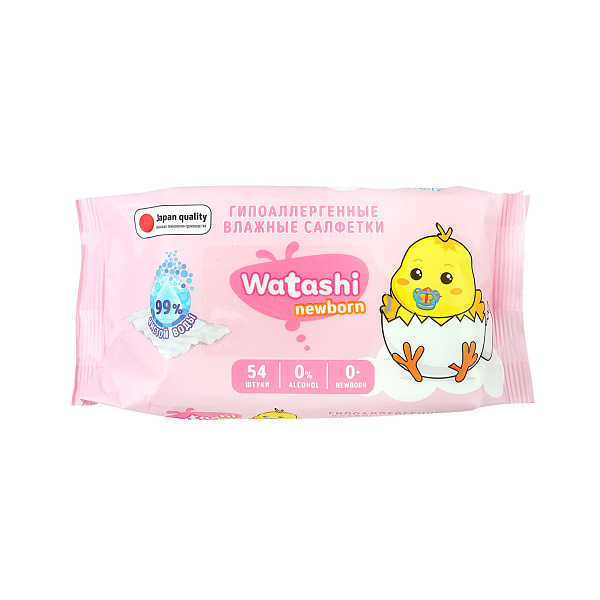 Салфетки влажные Watashi детские гипоаллергенные 54шт с 0мес