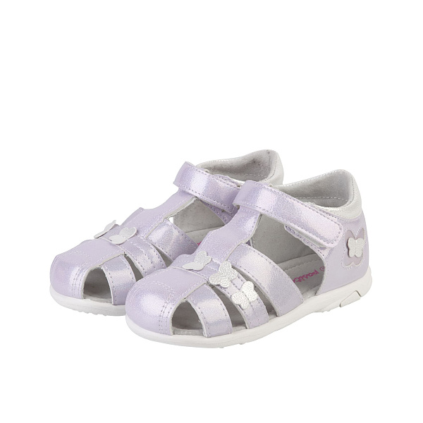 Сандалеты для девочек младшего возраста цвета металлик с декоративной аппликацией бабочек станет чудесным выбором для маленьких модниц. Модель оснащена стелькой и пяткой из кожи, которые обеспечат сухость и комфортную носку обуви. Анатомическая форма стельки не позволит ножке ребенка скользить внутри обуви во время ходьбы, а также помогает правильному формированию свода стопы у детей.