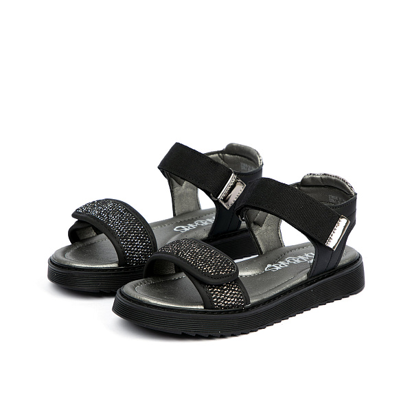 Легкие туфли для школьницы оформлены с применением черного и серебристого цвета. Они органично сочетаются с любой одеждой. Наличие фиксирующих липучек на обоих ремешках упрощает регулировку полноты и процедуру переобувания.