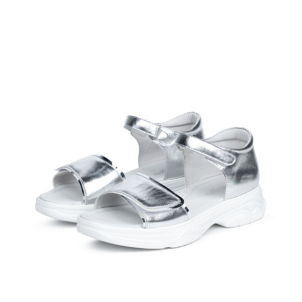 Открытые летние сандалии с толстой полиуретановой подошвой придутся по вкусу девочкам школьного возраста. Серебристый цвет делает обувь универсальной и сочетающейся с одеждой любой цветовой гаммы. Сандалии снабжены застежкой-липучкой, которая облегчает самостоятельное надевание, и могут регулироваться по полноте, плотно фиксируя обувь на детской ножке.