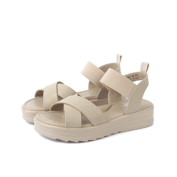 Сандалии Barbaris с перекрещенной перетяжкой и эластичным ремешком бежевые