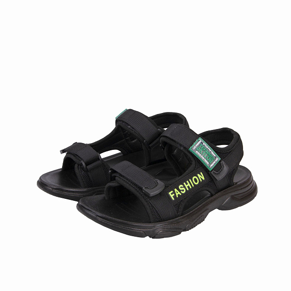 Стильные сандалии BETSY придутся по душе каждому мальчишке, который ценит оригинальность и комфорт в обуви! Рельефная подошва из полиуретана гибкая и устойчивая к износу – она равномерно распределяет нагрузку на ногу и не дает им уставать в процессе ходьбы. Верх сандалий изготовлен из приятного на ощупь текстиля – такой материал впитывает влагу и дарит комфорт стопам. Также комфорта добавляют липучки, они упрощают переобувание и плотно фиксируют обувь на ноге. Открытый нос и задник хорошо пропускают воздух и не дают ноге потеть. Изюминка сандалий – зеленая нашивка на ремешки и кислотно-зеленая надпись «Fashion».