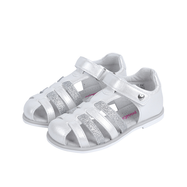 Легкие и удобные сандалеты для дошкольницы оформлены в серебристо-белой цветовой гамме. Модель с большим количеством прорезей отлично подойдет для самой жаркой погоды. Высокий задник с мягким верхним краем, закрытый нос и застежка в виде липучки гарантируют комфорт в течение всего дня. В меру упругая подошва не скользит, не стирается. Стелька и подкладка из натуральной кожи дополнены искусственным верхом. Материал обеспечивают естественный воздухообмен, устойчивы к износу и истиранию. Обувь без труда отмывается от загрязнений, долго сохраняет привлекательность и прочность.