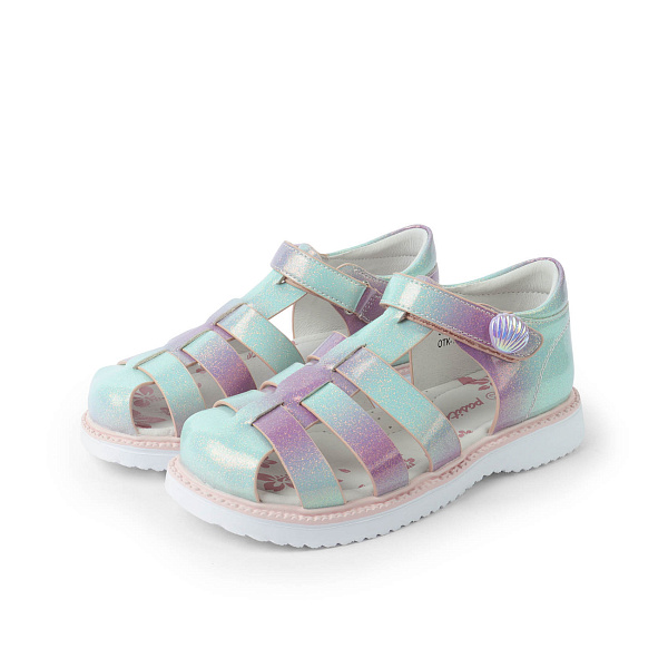Сандалеты оформлены в необычной цветовой гамме, украшены изящной ракушкой. Они вызовут искренне восхищение у любой девочки дошкольного возраста, удачно дополнят нежный образ маленькой модницы. Закрытый нос и высокий задник призваны зафиксировать стопу в правильном положении. В роли застежки выступает ремешок с липучкой, ускоряющий процесс переодевания. Многочисленные прорези обеспечат хорошую вентиляцию в самый жаркий день.