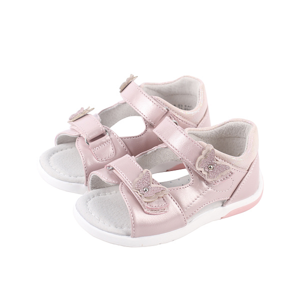 Розовые сандалии с бабочками для девочки покоряют своим очарованием и функциональностью. Верх изготовлен из искусственной кожи, что делает их устойчивыми к износу. Внутренний слой выполнен из натуральной кожи упрощает уход за обувью и снижает риск натирания.
