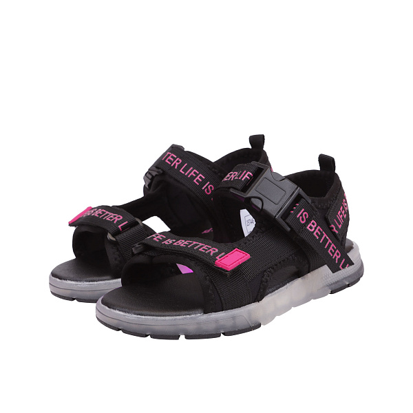 Стильные черные сандалии PASITO станут любимцем в детском гардеробе. Изготовленные из текстиля, они хорошо пропускают воздух и не дают ногам перегреваться. В качестве липучки используются мягкие и эластичные ремешки в верхней и нижней части, они позволяют регулировать обувь по полноте и плотно фиксировать. Стелька выполнена из кожи, благодаря чему ногам всегда комфортно. Подошва из ТПР не скользит на поверхностях, устойчива к нагрузкам и износу, поэтому сандалии прослужат не один сезон.