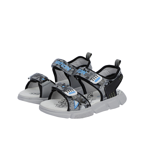 Привлекательное сочетание серого и голубого цвета по достоинству оценит мальчик дошкольного возраста. Удобные туфли органично дополнят сезонный гардероб, выручат на прогулке в сильную жару.