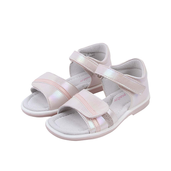 Сандалии Pasito на двойной липучке с блестящими элементами перламутро-розовые