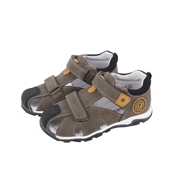 Сандалии для мальчиков дошкольного возраста с закрытой пяткой и укрепленным носом обеспечат комфорт и защиту ножек ребенка. Трехслойная подошва гарантирует мягкость и амортизацию при ходьбе, а два регулируемых ремешка позволят добиться идеальной посадки. Сандалии выполнены в классическом коричневом цвете и дополнены эмблемой сбоку, что придает им стильный и аккуратный вид.
