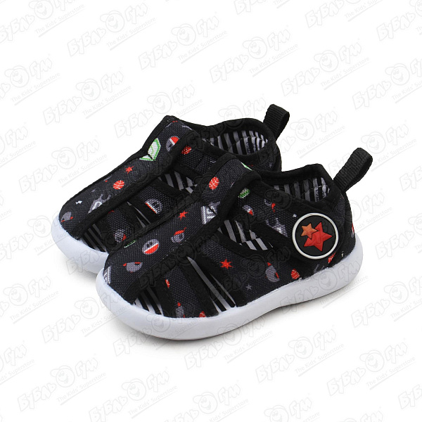 Сандалии для мальчика чёрного цвета станут ярким и практичным дополнением летнего гардероба. Тёмный фон украшен забавным спортивным принтом с мячами и кепками, который придаёт обуви оригинальность и привлекает внимание. Удобная застёжка-липучка с декоративным элементом в виде звёзд обеспечивает быструю и надёжную фиксацию на ноге.