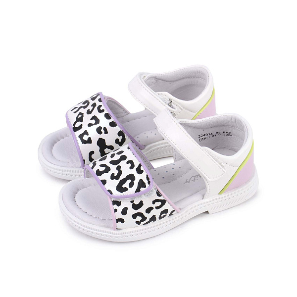 Сандалии Pasito для девочки с пятнистым принтом – отличный выбор для летнего гардероба. Верх выполнен из искусственной кожи, что позволяет изделию долго сохранять привлекательный вид и легко очищается от небольших загрязнений. Стелька и подкладка изготовлены из натуральной кожи, что способствует хорошему воздухообмену и позволяет ногам оставаться сухими даже в жаркую погоду.
