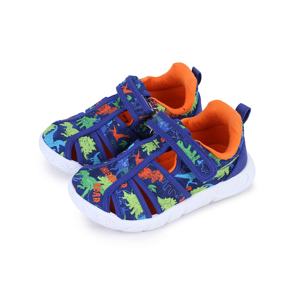 Застежка на липучке позволяет быстро и легко надевать сандалии без помощи взрослых. Подошва из ПВХ обеспечивает надежное сцепление с различными поверхностями, что способствует безопасности во время движения. Синий цвет в сочетании с яркими оранжевыми элементами и разноцветными динозаврами привлекает внимание и поднимает настроение. Эти сандалии идеально подойдут для прогулок и приключений как в городе, так и на природе.